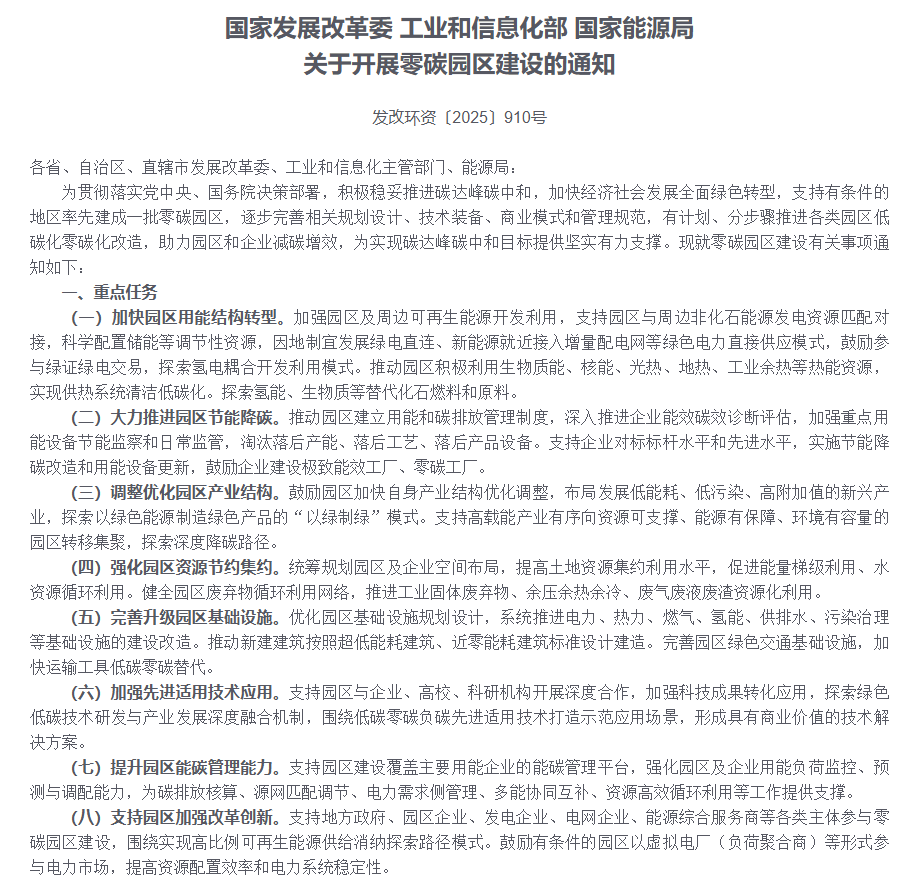 97国际-至尊品牌,源于信誉-在全球积极应对气候变化、我国全力推进双碳目标的大背景下,零碳智慧园区建设已成为实现绿色可持续发展的关键举措。2025年,国家发展改革委、工业和信息化部、国家能源局联合发布《关于开展零碳园区建设的通知》,将零碳工厂和零碳工业园区纳入主要工作范畴,多地纷纷出台相关政策推动园区低碳转型。
