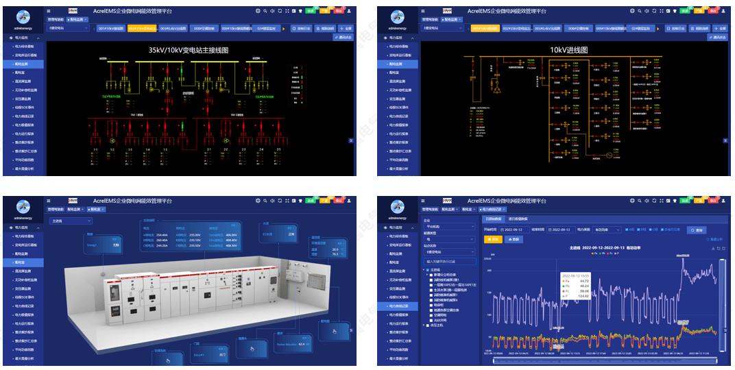 实时监测高低压配电柜的电压、电流、功率等电力参数,整体实现遥测、遥信、遥控、遥调功能。